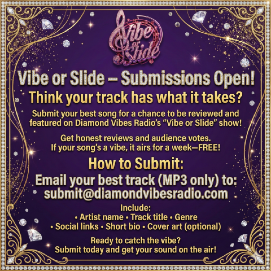 Get your music reviewed on Vibe or Slide on Diamondvibesradio.com Submit info on flyer