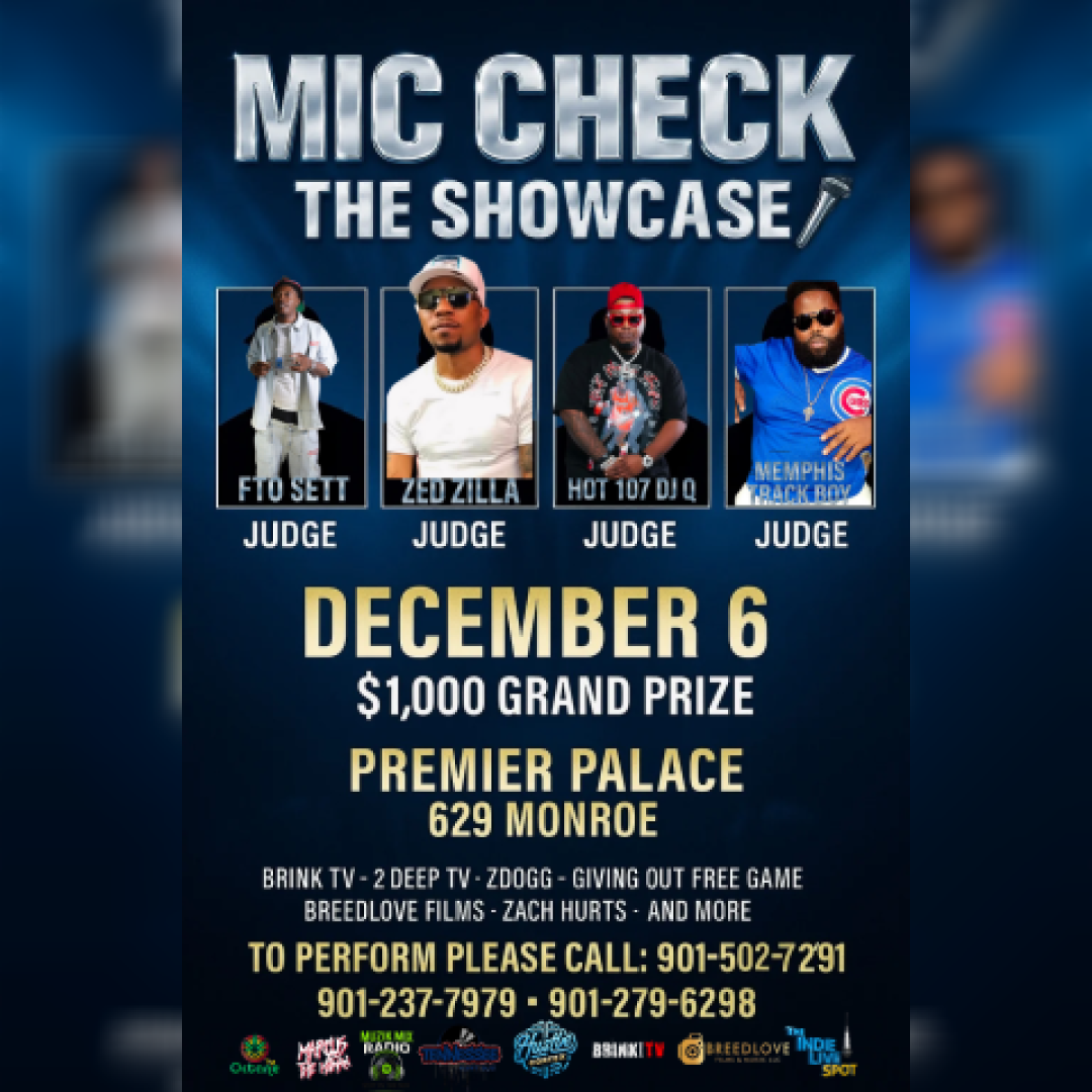 Mic Check: The Showcase – Where Independent Talent Meets Industry Access December 6th · Premier Palace, Memphis, TN Memphis has always been a breeding ground for breakout talent — and on December 6th, the city’s next wave of stars will have the chance to prove they’re next in line. Beale-Board Records presents Mic Check: The Showcase, a curated industry experience designed to spotlight independent artists with true talent, hunger, and brand potential.
